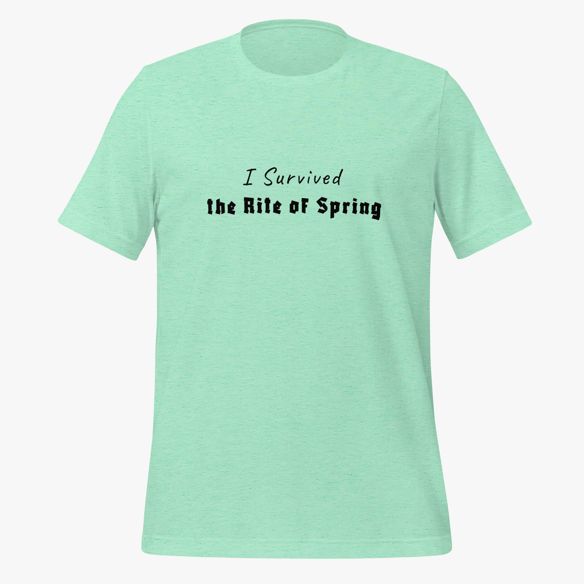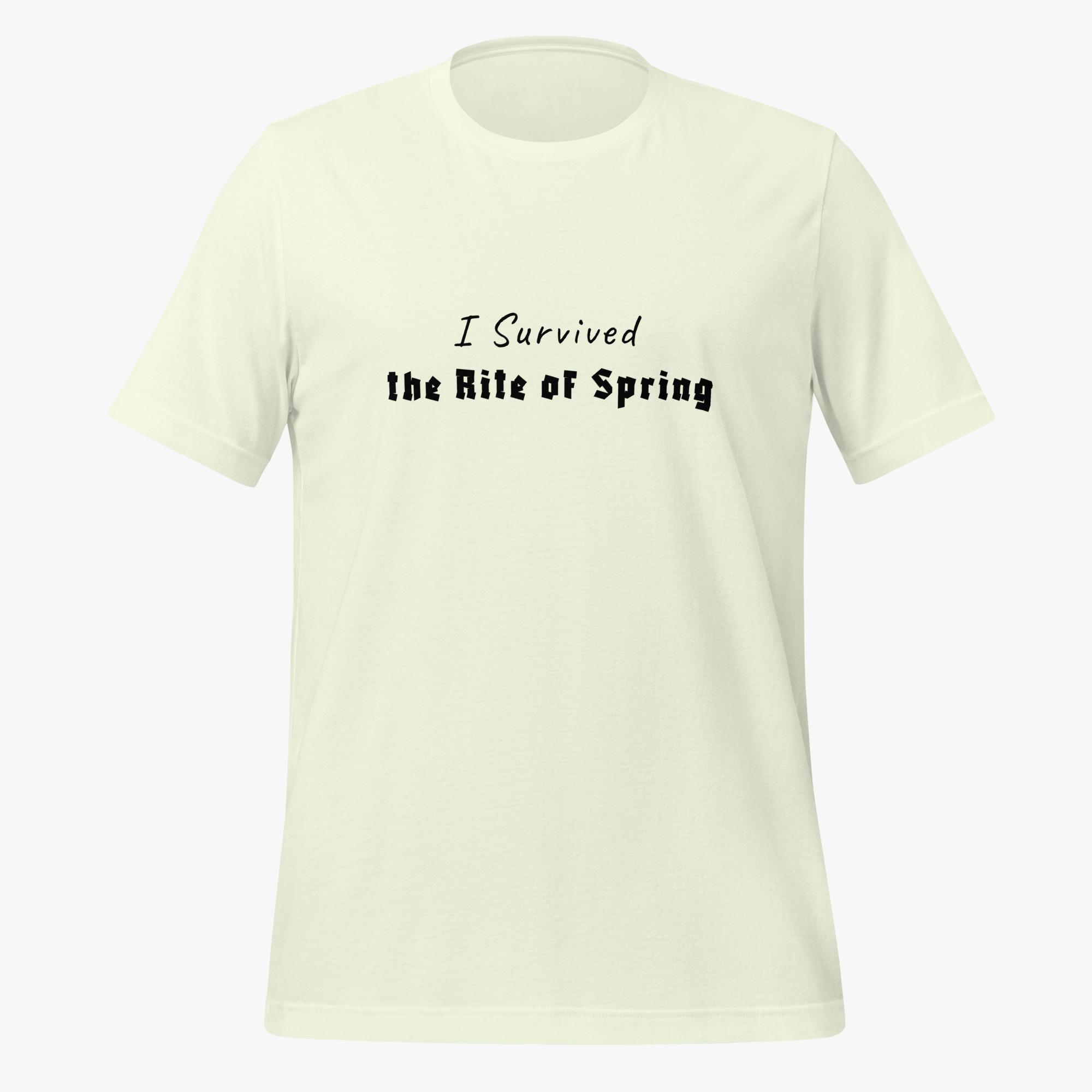 Celebrate your musical fortitude with our “Rite of Spring Survivor” t-shirt! Perfect for classical music enthusiasts and brave concert-goers alike, this pays homage to Stravinsky’s revolutionary and once-controversial ballet.